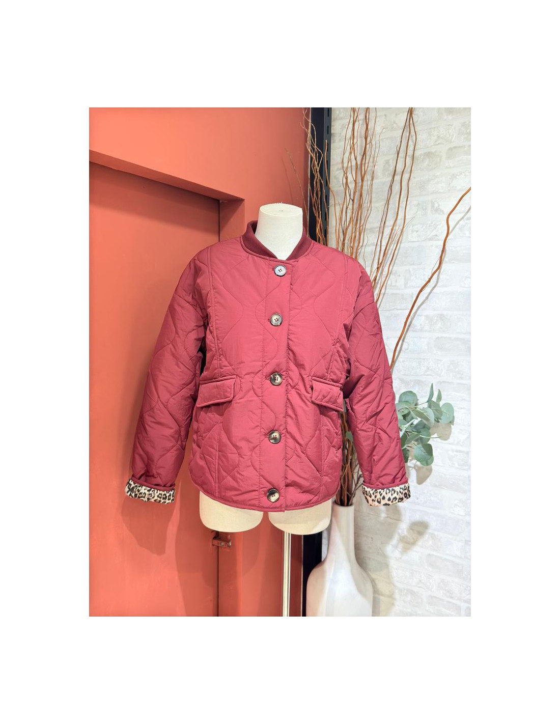 Chaqueta con diseño enguatado, forro en interior en print. Cierre mediante botones con uno de repuesto en interior, bolsillos laterales.