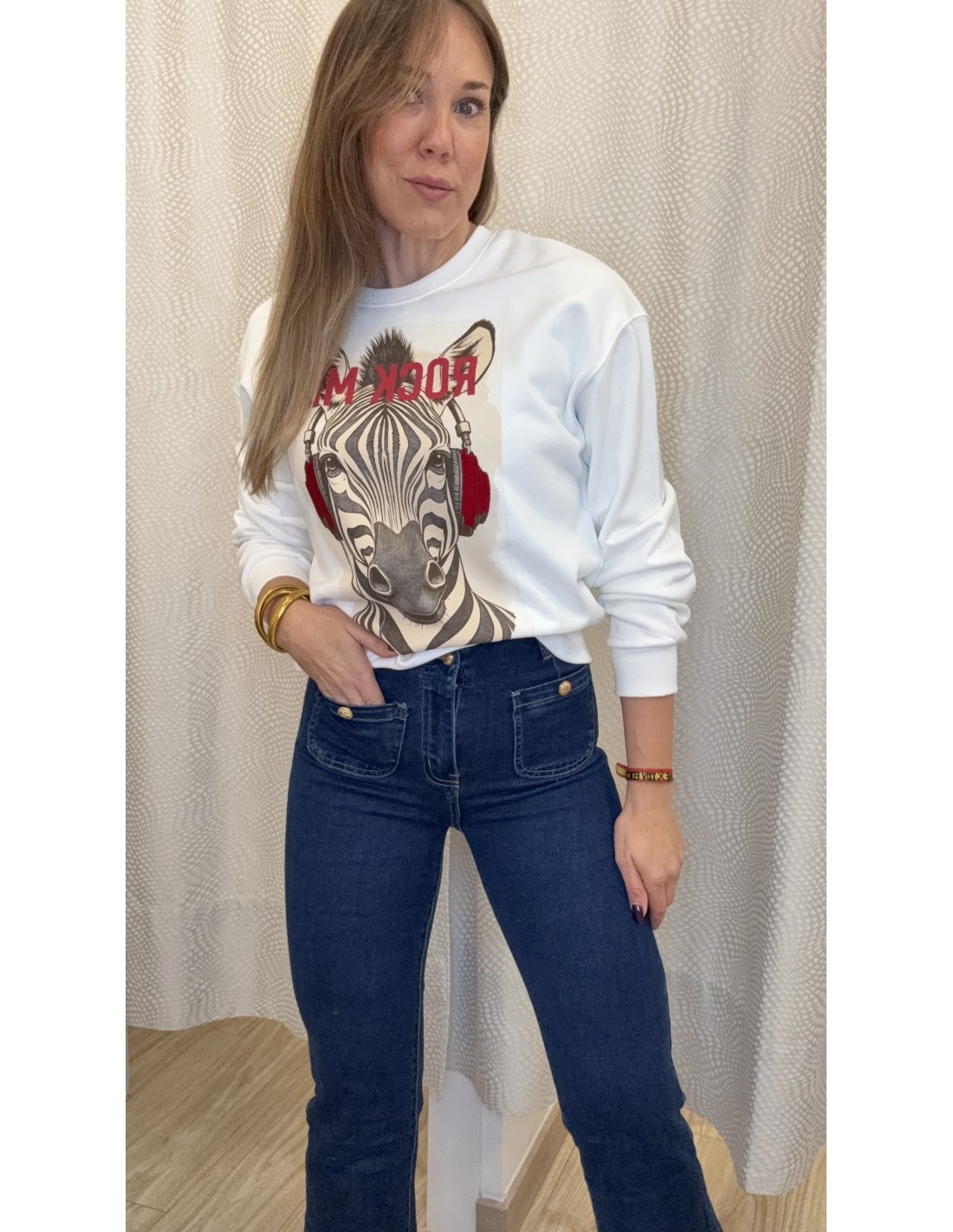 Sudadera 85% Algodón, 15% Poliéster. Talla única, abarca desde una 34 a una 42 más o menos.