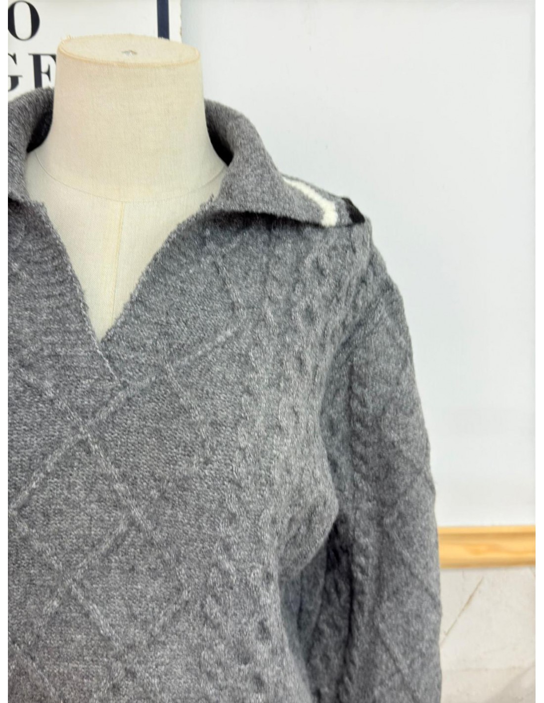 Jersey tipo polo, con detalle de rombos y cenefas.