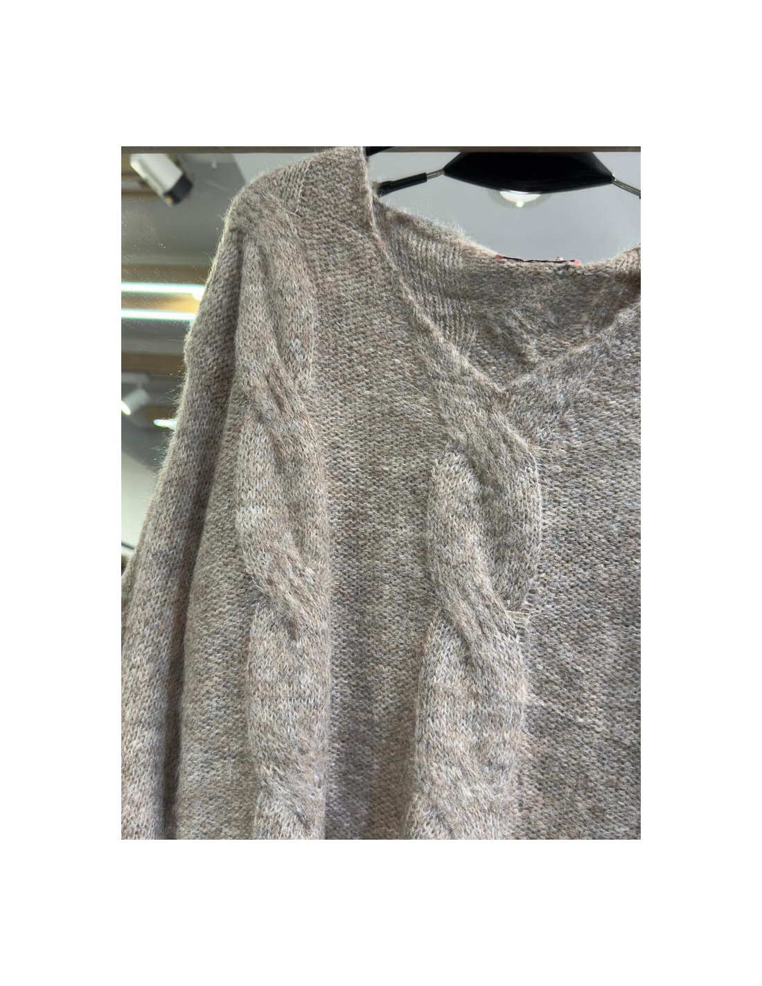 Jersey cuello pico, detalle de rombos en cenefas, bajos de puños y bajo con efecto roto. Talla única, abarca desde una 36 a una 42/44. 72% Acrílico, 15% Poliamida, 8% Lana, 5% Elastano.
