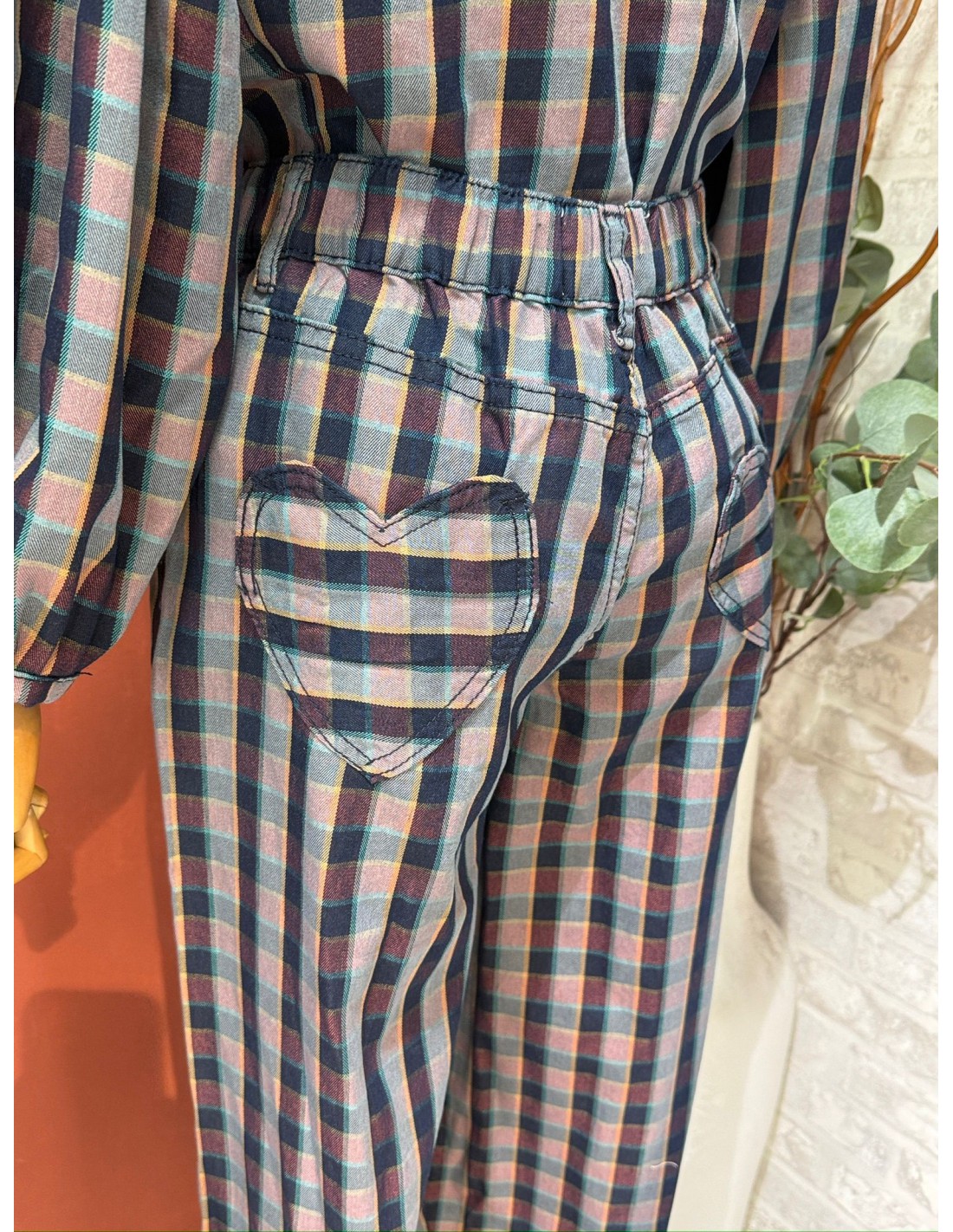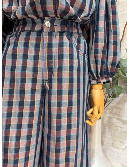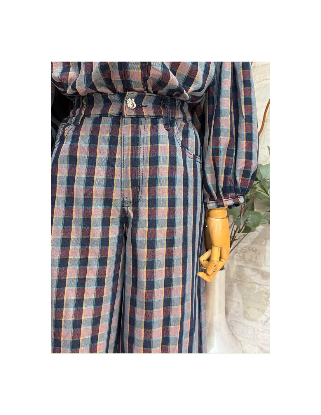 Pantalón en cuadros con blusa a conjunto.