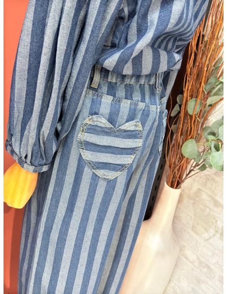 Tejano con elástico en la cintura, bolsillos traseros en forma de corazón.