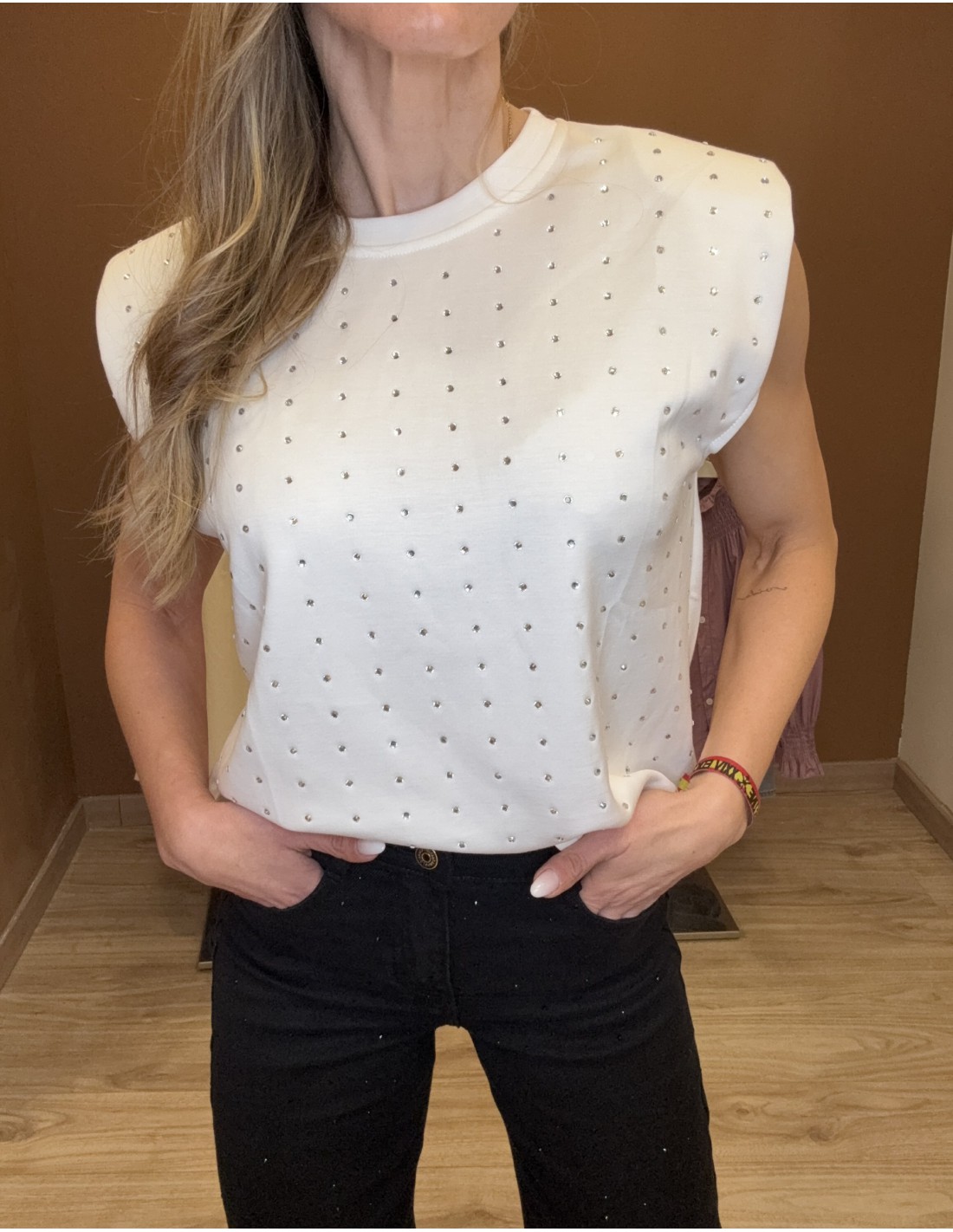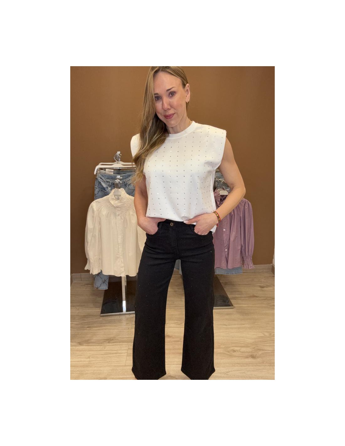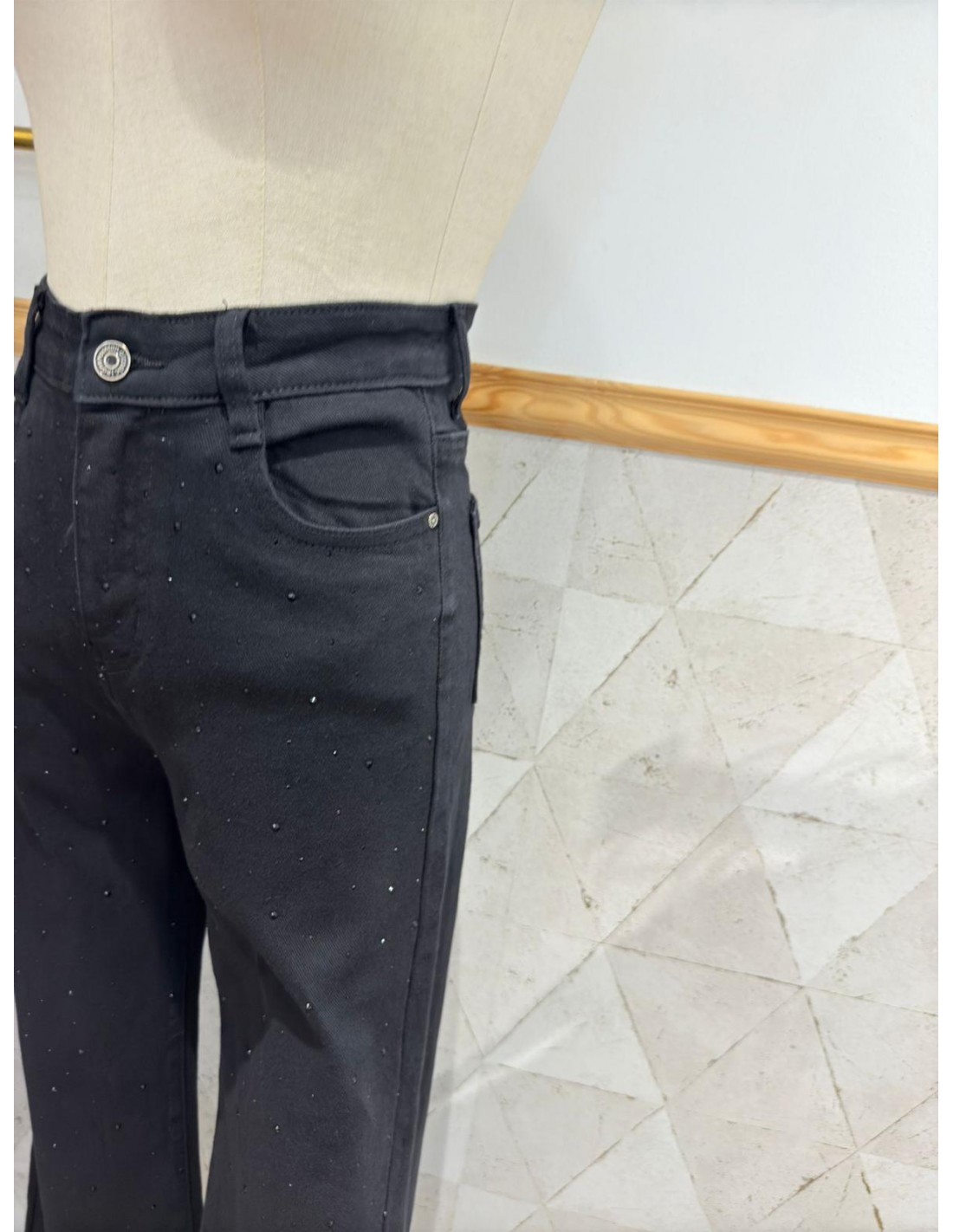 Tejano con strass en la parte delantera en el mismo tono del tejano, talle medio/alto.